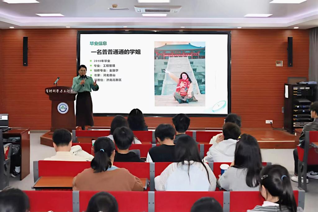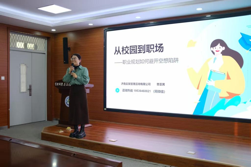 10月30日,为帮助学子清晰锚定发展方向、避开职业规划“空想陷阱”,学院邀请2006级校友、亚男财税政策咨询大师工作室主理人、济南云策管理咨询有限公司合伙人曹亚男,在章丘校区6432会议室进行《从校园到职场——职业规划如何避开空想陷阱》专题讲座。学院学生(就业)工作办公室主任王桂月主持,2024级、2025级学生代表现场参与交流。