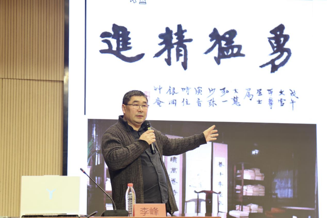 李峰从甲骨文切入,揭示书法史是汉字书写应用史,强调实用先于艺术创作的本质。随后以弘一法师、王羲之等为例,阐述学习书法可实现静心、启智、修身、审美之效。尤其在审美方面,李教授以具体生动的案例,深入解读魏晋书法“形”与“意”、“简”与“淡”、“韵味”与“甜俗”的关系,介绍了如何提升书法修养,强调在不同的书写环境下欣赏书法,从而理解“作字行文,文以载道,以书焕采,切时如需”的核心要义。