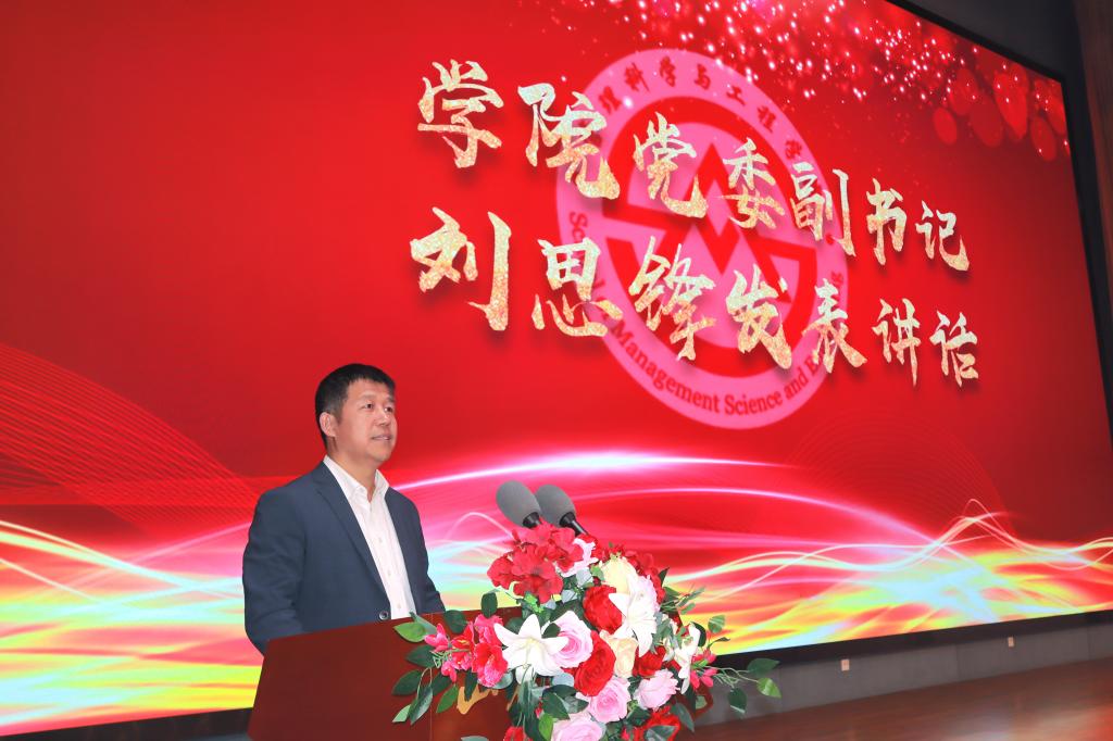 学院党委副书记刘思锋发表讲话,他代表学院党委向第十四届学生组织全体成员的辛勤付出和卓越贡献表示衷心的感谢,并对第十五届学生组织全体成员提出三点希望与要求:一是要筑牢思想根基,做立场坚定的引领者;二是深化五育并举,做全面发展的示范者;三是践行服务宗旨,做躬身实干的贡献者,共同为学院的高质量发展和中华民族伟大复兴贡献青春智慧与力量。