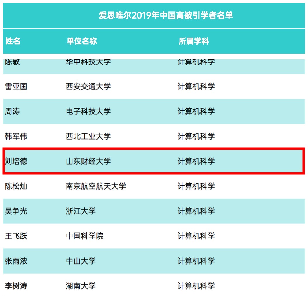 5月7日,爱思唯尔(Elsevier)正式发布2019年中国高被引学者(Chinese Most Cited Researchers)榜单,我院刘培德教授再次入选。这是自2014年以来,刘培德教授连续第六次入选年度爱思唯尔高被引学者榜单。据统计,本次国内共有2163位学者入选,分别来自242个高校或科研机构。