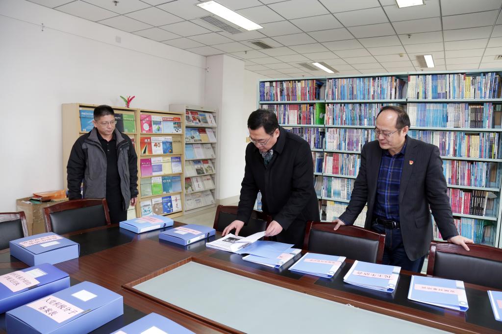 检查组一行听取汇报并查阅了学院的党建工作相关资料。