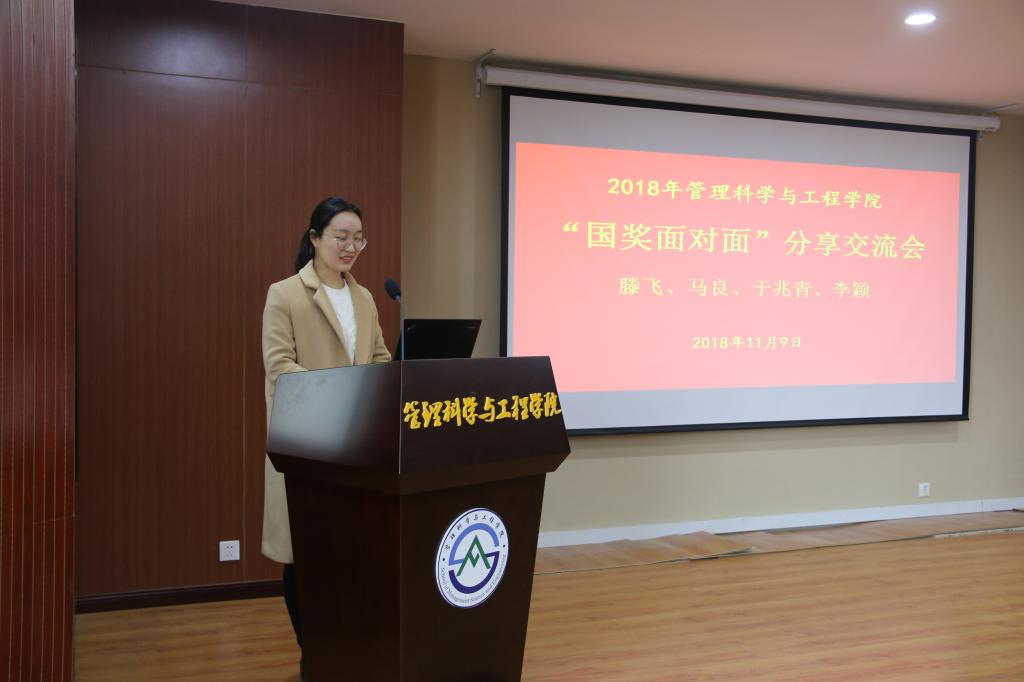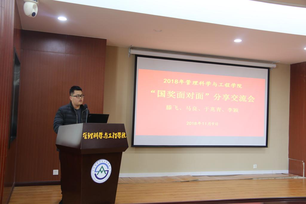 11月9日下午,我院在逸夫楼621教室举行“国奖面对面”分享交流会。本次会议由2018年国家奖学金获得者滕飞、马良、于兆青、李颖同学进行经验分享,我院院长助理马建华教授对分享进行点评,研究生学生会主席张培主持,本院部分硕士研究生参加了此次交流会。
