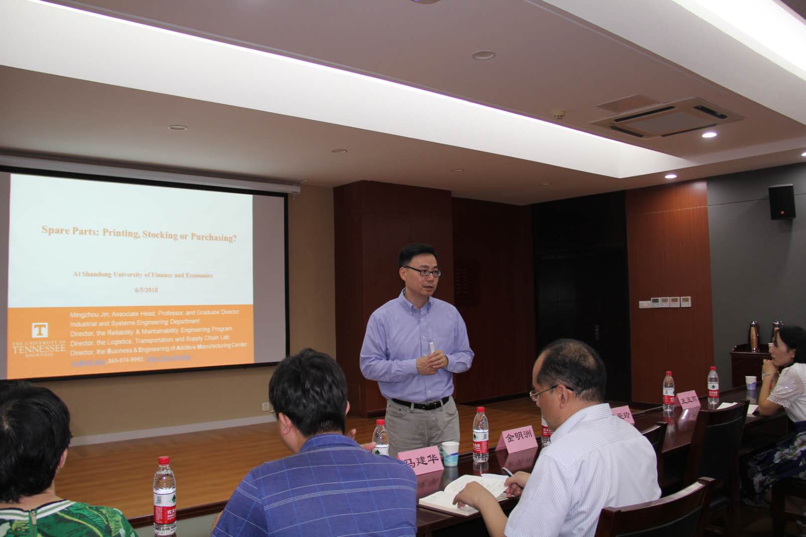 6月5日,美国田纳西大学工业与系统工程系主任金明洲教授应邀来我院为师生作了题为“Spare Parts: Printing, Stocking or Purchasing?”的学术报告。报告由学院院长助理马建华主持,部分教师和研究生共40余人参加此次报告会。