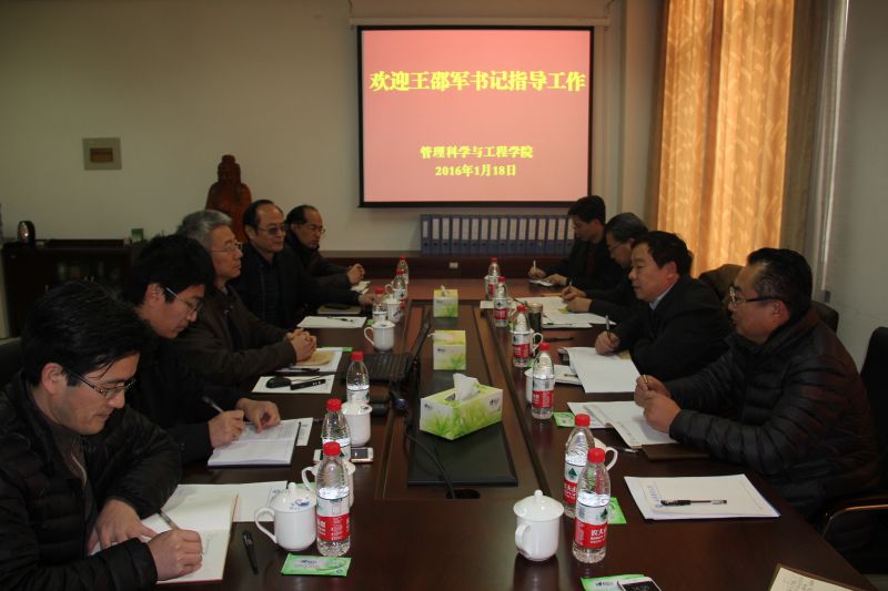 张新代表学院介绍了学院的基本情况、党建工作的开展情况、学科建设情况、人才培养情况和学院文化建设情况,并就下一步工作思路进行了汇报。与会人员一起讨论了“平和、进取、分享”的学院文化和下一步管理科学与工程专业博士点评估等工作。