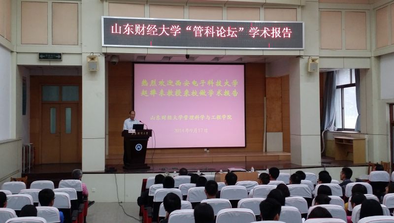 9月17日,教育部管理科学与工程学科专业教学指导委员会委员、西安电子科技大学管理科学与工程学科博士生导师赵捧未教授应邀做客tyc122cc太阳成集团“管科论坛”,在燕山校区3号教学楼报告厅做了题为 “西安电子科技大学经管学科建设与研究生培养”的学术报告,我院部分老师、大三本科生以及2014级全体研究生共计150余人参加报告会。报告会由张新院长主持。赵教授介绍了西安电子科技大学经管学院的基本情况,分享了经管学院学科建设、研究生培养、省级哲学社会科学重点研究基地建设等方面的经验。