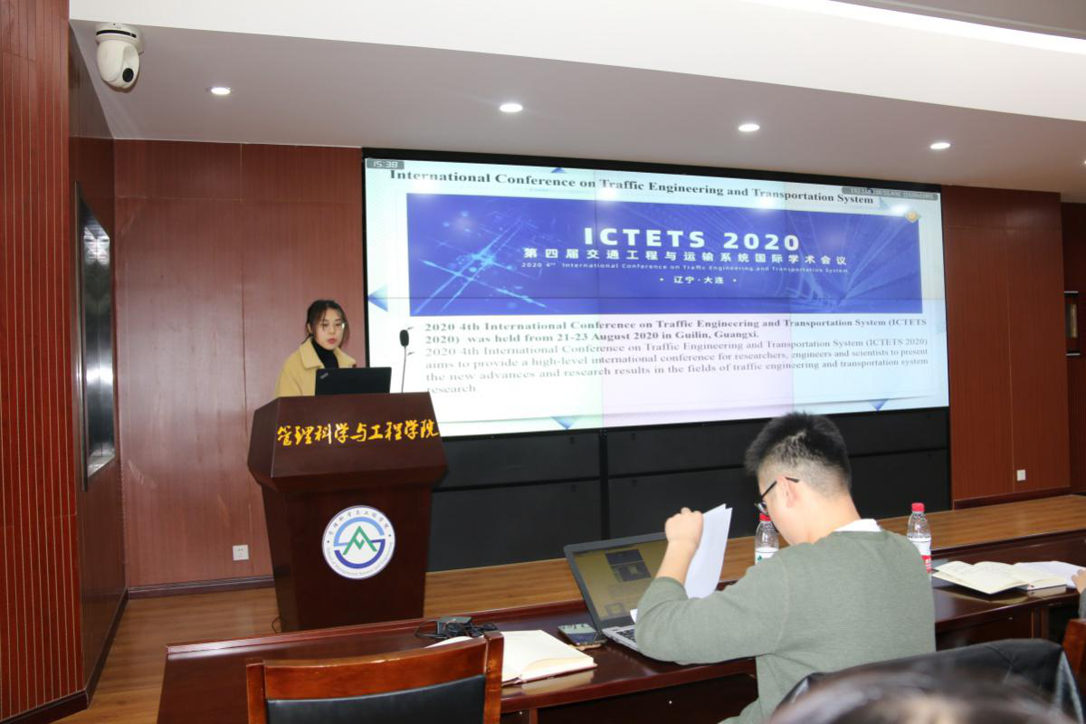 19级硕士顾欣欣于2020年8月21-23日参加第四届交通工程与运输系统国际学术会议,结合参会经历重点分享了基于两阶段算法的多车场带时间窗的车辆路径问题研究。19级硕士丁佳于2020年9月10日参加第32届中国控制与决策会议,根据参会情况重点分享了新零售环境下同城即时配送问题研究。会议最后,20级硕士司文婷以“深度学习和知识图谱学习”为题进行汇报,帮助大家了解深度学习、神经网络、自然语言处理等方面的知识。