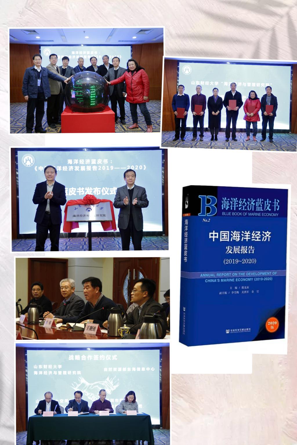 12月5日,由我校与中国海洋大学主办、我院承办、社会科学文献出版社和深圳市维度数据科技股份有限公司协办的海洋经济蓝皮书:《中国海洋经济发展报告2019-2020》暨“海洋经济高质量发展”学术研讨会在舜耕校区举行。学校党委书记王邵军,中国工程院院士、中国海洋大学副校长李华军教授,社会科学文献出版社社长王利民,自然资源部北海局局长、分党组书记郭明克出席发布会并致辞。发布会由学校校长赵忠秀教授主持。中国社会科学院学部委员汪同三研究员,南开大学数量经济研究所原所长张晓峒教授,国家海洋标准计量中心原主任吴爱娜教授,国家海洋局东海信息中心主任龚茂珣教授,深圳市维度数据科技股份有限公司副总经理杨丽娟,山东省国土空间数据和遥感技术研究院院长丁志习研究员,中国海洋大学文科处处长金天宇,山东省泰山学者特聘教授、中国海洋大学李广雪教授,中国海洋大学海洋与大气学院副院长吴克俭教授,tyc122cc太阳成集团副校长陈晓兰、张新教授,我院院长刘培德教授等来自学术界、出版界和企业界的专家学者以及学院部分师生代表出席了发布会,并针对海洋经济高质量发展问题展开了深入的交流与研讨。