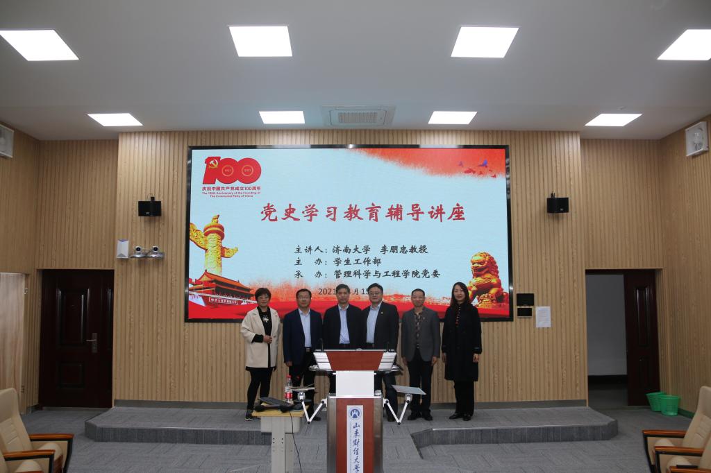 4月15日下午,由党委学生工作部主办,我院党委承办的研究生党员党史学习教育专题党课,在逸夫楼Y103报告厅举行,济南大学马克思主义学院李朋忠教授以《响应习近平总书记号召,认真学党史、悟思想、强信念践行我党的初心与使命》为题,给燕山校区各学院研究生党员代表、我院全体党员和入党积极分子上了一堂生动的党课。此次主题讲座采用“线下主会场+线上分会场”方式在燕山、圣井校区同步进行。