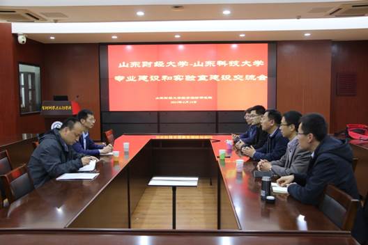 王洪海对山东科技大学经济管理学院一行来访表示欢迎,并介绍了我院办学情况和电子商务专业建设情况。王高山介绍了大数据管理与应用专业的人才培养方案制定、课程设置和专业建设经验。杜胜永分享了我院实验室建设情况以及实验室服务专业教学的相关情况。王松介绍了山东科技大学经济管理学院专业建设情况以及大数据管理与应用专业筹建情况,并对我院专业建设给予充分肯定,希望日后能经常交流经验,共同提高办学水平。张福平介绍了山东科技大学经济管理学院实验室建设情况,并与我院实验室建设情况进行了沟通交流。最后,山东科技大学经济管理学院一行参观了我院专业实验室。