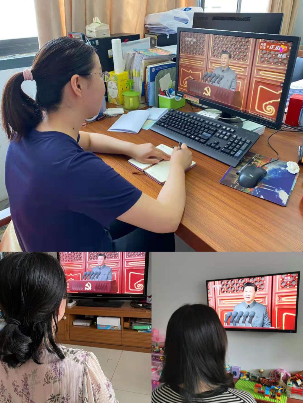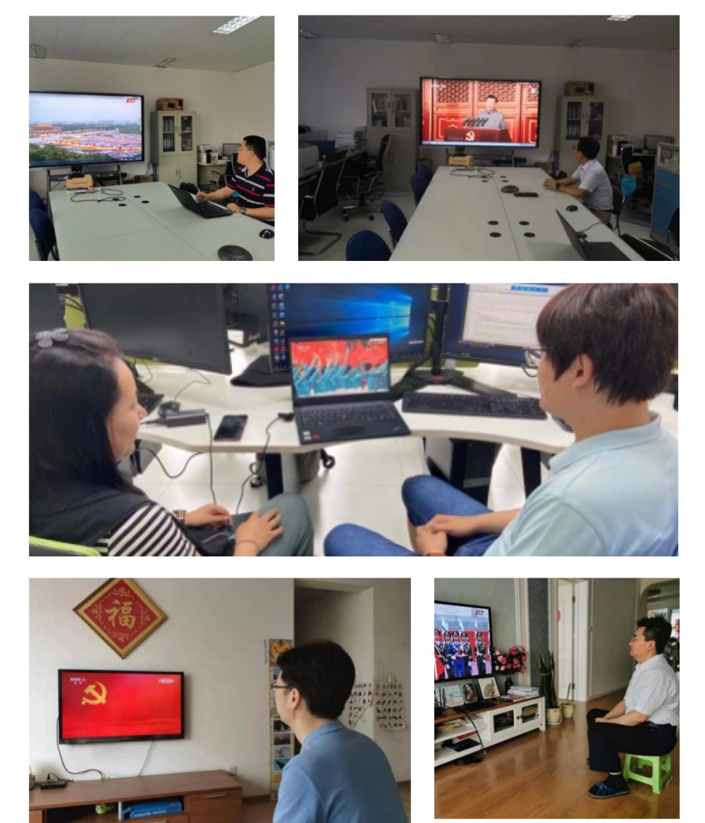 “我代表党和人民庄严宣告,经过全党全国各族人民持续奋斗,我们实现了第一个百年奋斗目标,在中华大地上全面建成了小康社会,历史性地解决了绝对贫困问题,正在意气风发向着全面建成社会主义现代化强国的第二个百年奋斗目标迈进……”“我们积极学习借鉴人类文明的一切有益成果,欢迎一切有益的建议和善意的批评,但我们绝不接受‘教师爷’般颐指气使的说教!中国共产党和中国人民将在自己选择的道路上昂首阔步走下去,把中国发展进步的命运牢牢掌握在自己手中”“任何人都不要低估中国人民捍卫国家主权和领土完整的坚强决心、坚定意志、强大能力”随着习总书记铿锵的声音,燕山校区逸夫楼514、610、621会议室、圣井校区学院报告厅响起了阵阵掌声、欢呼声,这里是我院组织师生党员、入党积极分子、民主党派代表收看庆祝中国共产党成立一百周年大会盛况直播的现场。除了集体收看外,各支部也根据实际情况,组织了党员利用手机、电脑在教研室、实验室等不同岗位收看了本次直播。