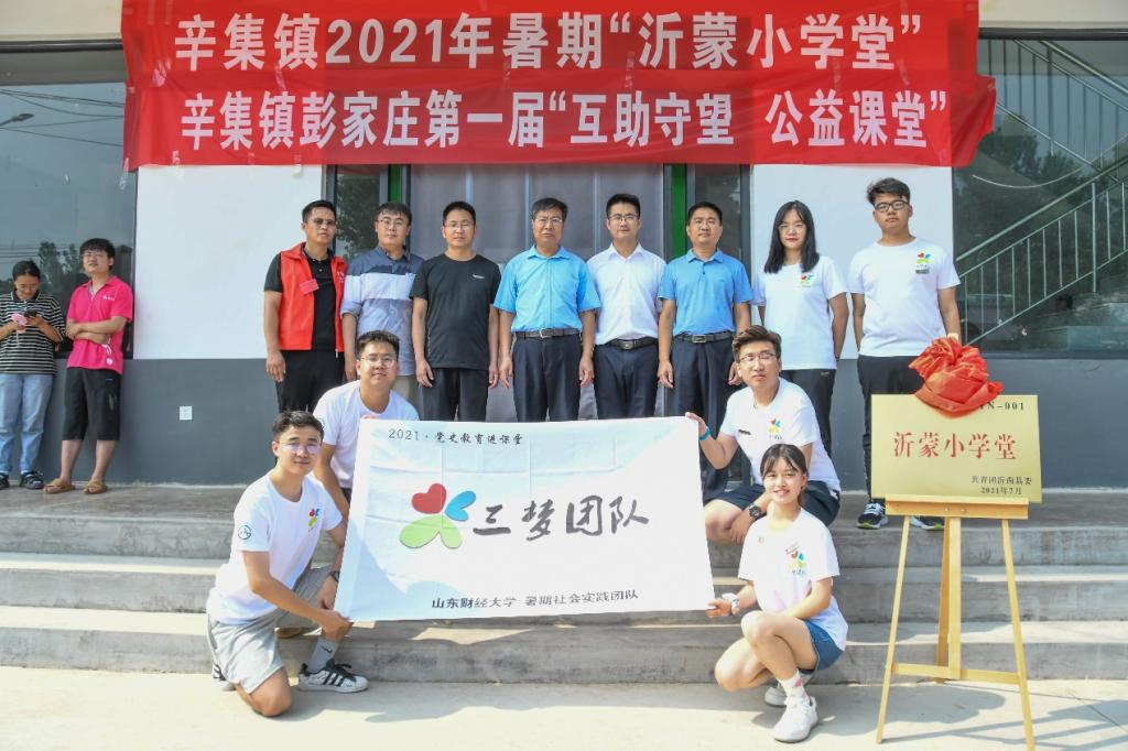 7月10日上午,我院“三梦”团队支教团成员前往彭家庄村参加由辛集镇乡村好青年彭宝灯发起的辛集镇2021年暑期“沂蒙小学堂”暨互助守望公益课堂开课仪式。沂南县团县委副书记侯合雷,县民政局党组成员、县慈善总会秘书长赵遵信,辛集镇人大主席卢克叶、组织委员黄建国,社区干部代表、公益组织负责人、爱心人士代表、学生及家长代表共计60余人出席。