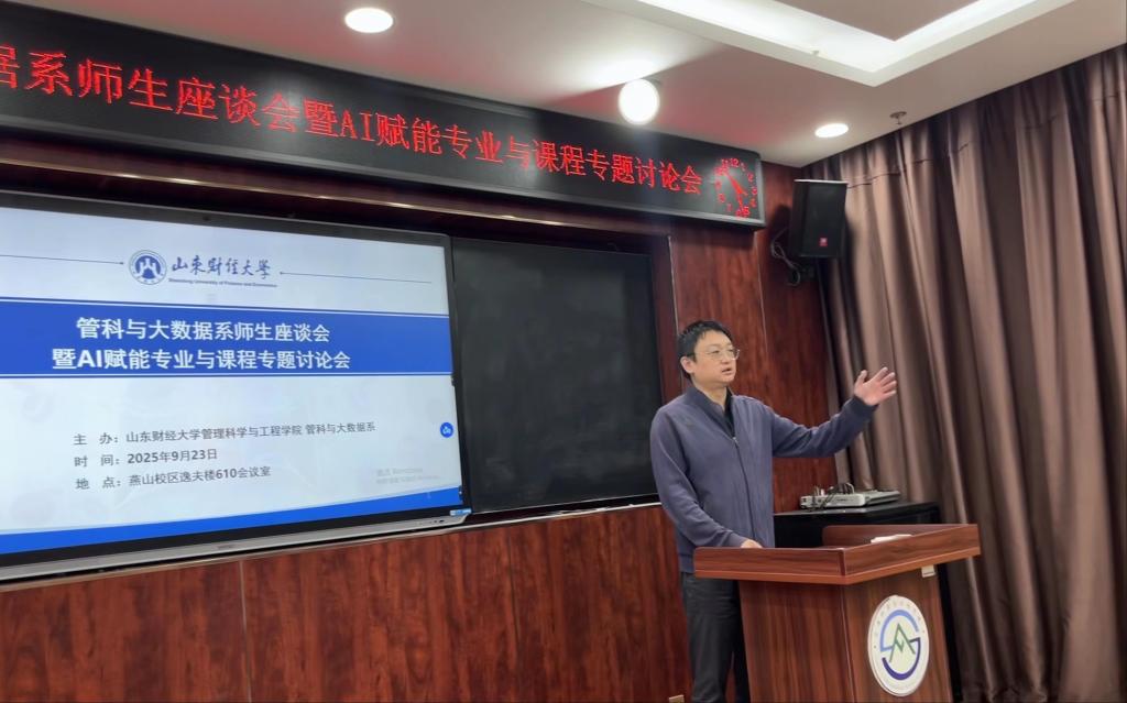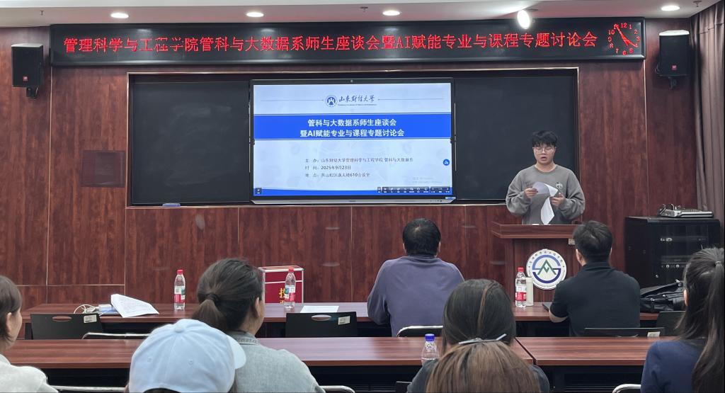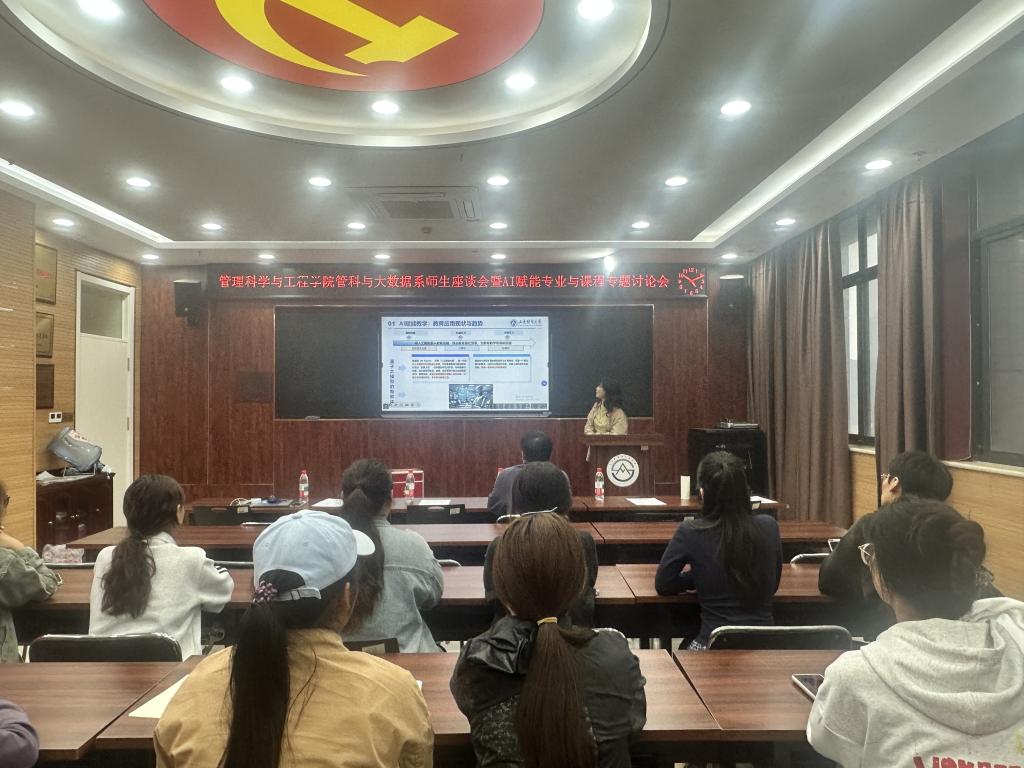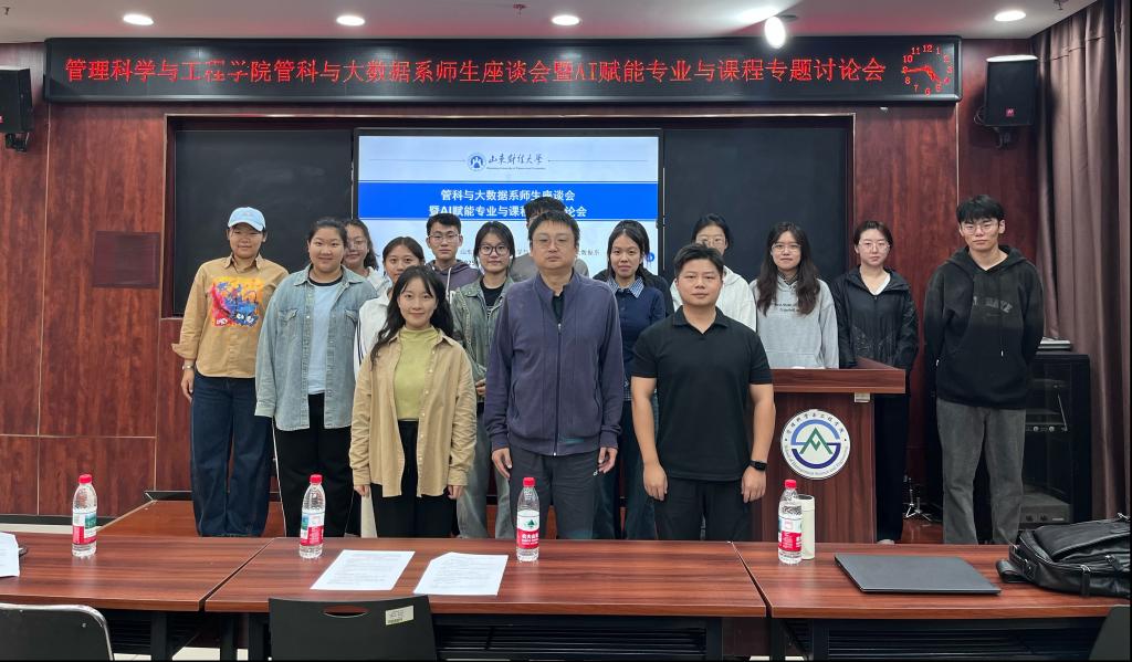 为深入推进新文科建设,加速大数据管理与应用专业的高质量发展,并积极响应人工智能时代对高等教育提出的新要求,太阳成集团122ccvip管理科学与大数据系(下简称“大数据系”)于2025年9月23日召开了师生座谈会暨“AI赋能专业与课程建设”专题讨论会。会议由学院大数据系主任杨成伟主持,大数据系两位新教师王露潼和王帅参加了本次座谈暨研讨会,大数据管理与应用专业2023级2个班以及大数据管理与应用(金融大数据)卓越班20余名学生代表参加了本次会议。